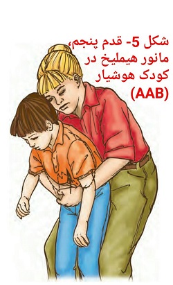 - اگر بازهم بالا رفتن قفسه سینه را ندیدیم، سراغ خارج کردن جسم خارجی با مانور قدم پنجم می رویم